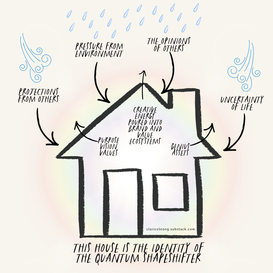 When the house is full and your Resources of SELF continue to grow, your identity pushes outwards (expression of Self / Energetic Overflow™) even in the face of external pressure. Your Identity Structure, or capacity, (the size and strength of the house) expands too, to match your level of growth.